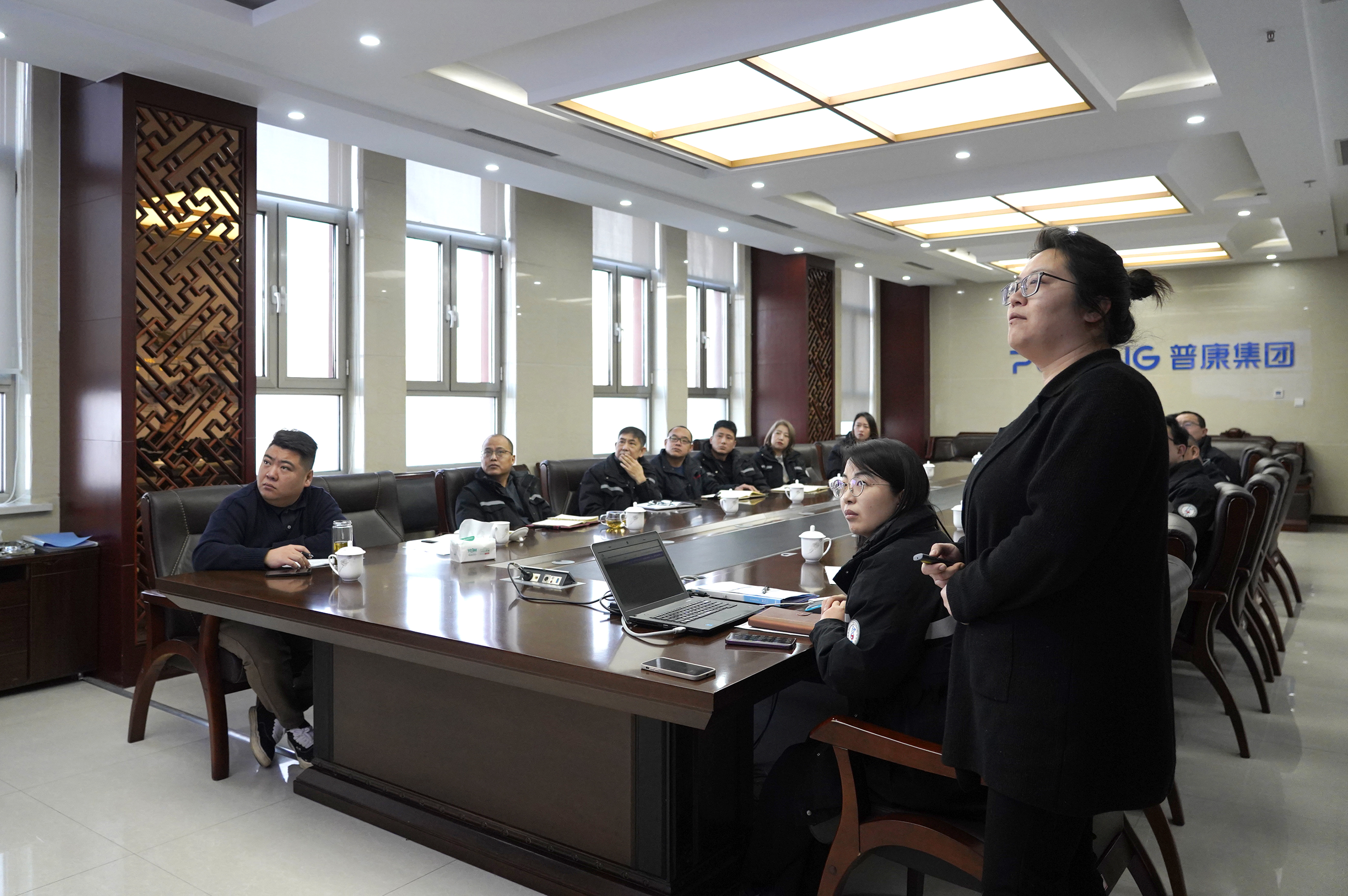 普康醫療總經理柏乾、營銷調控中心總經理柏佳莉、各部門負責人等人員出席會議。會議由辦公室主任陳肖主持。